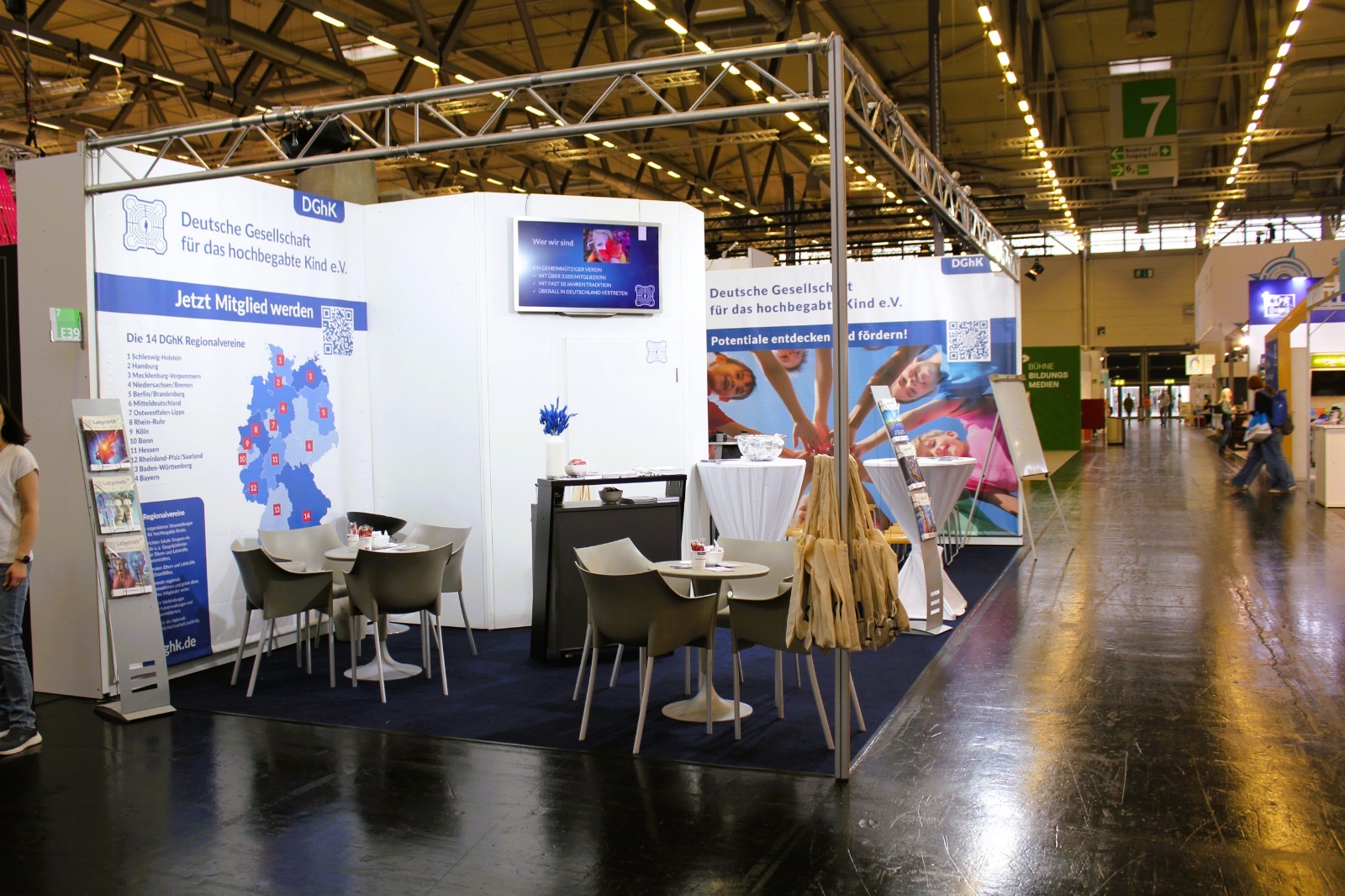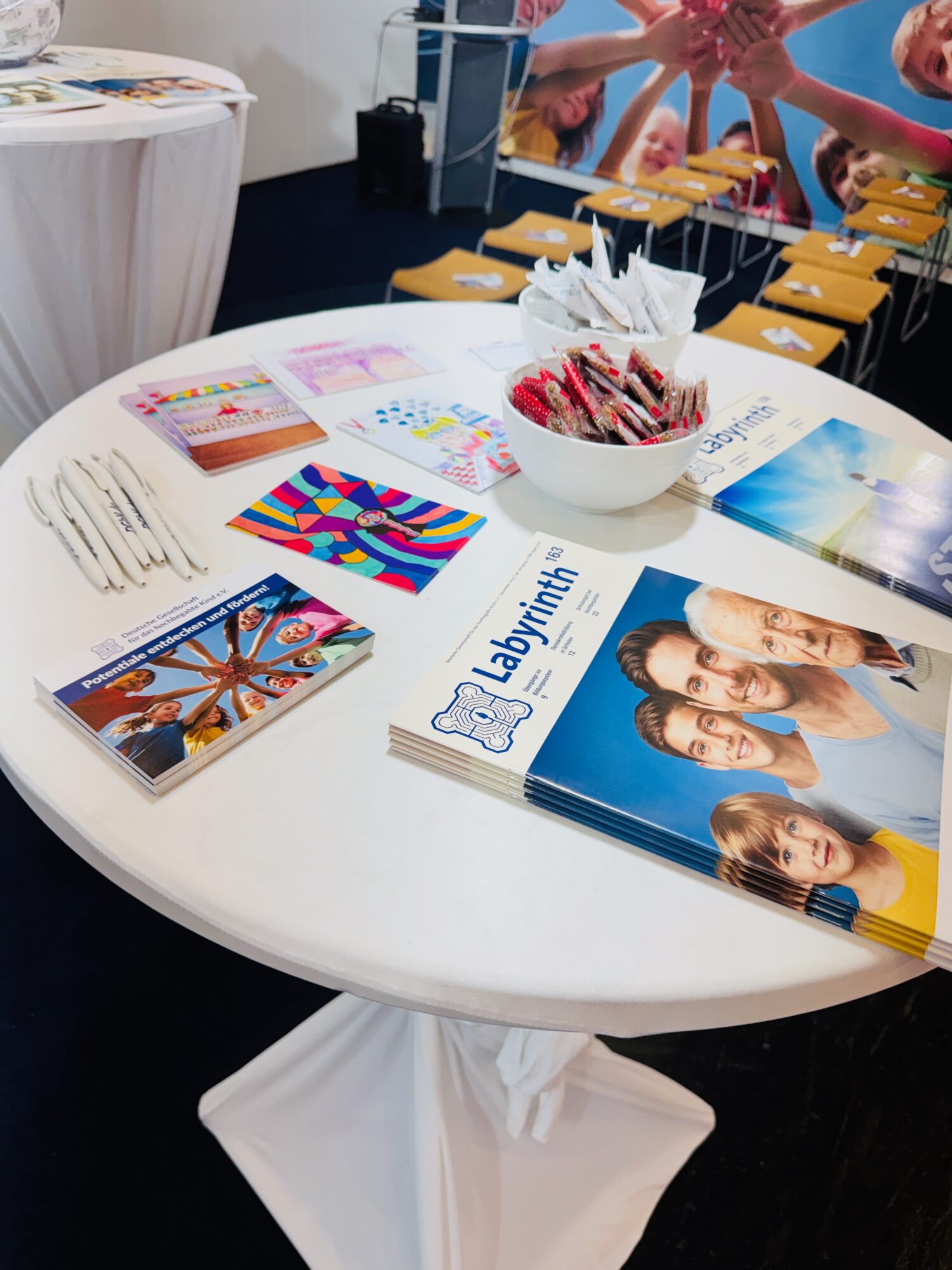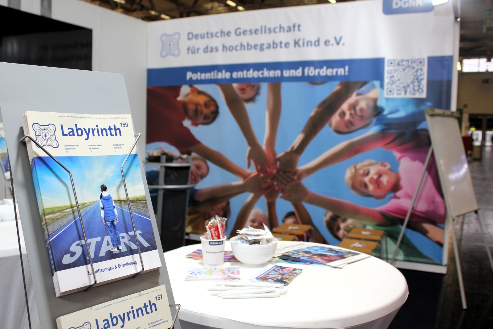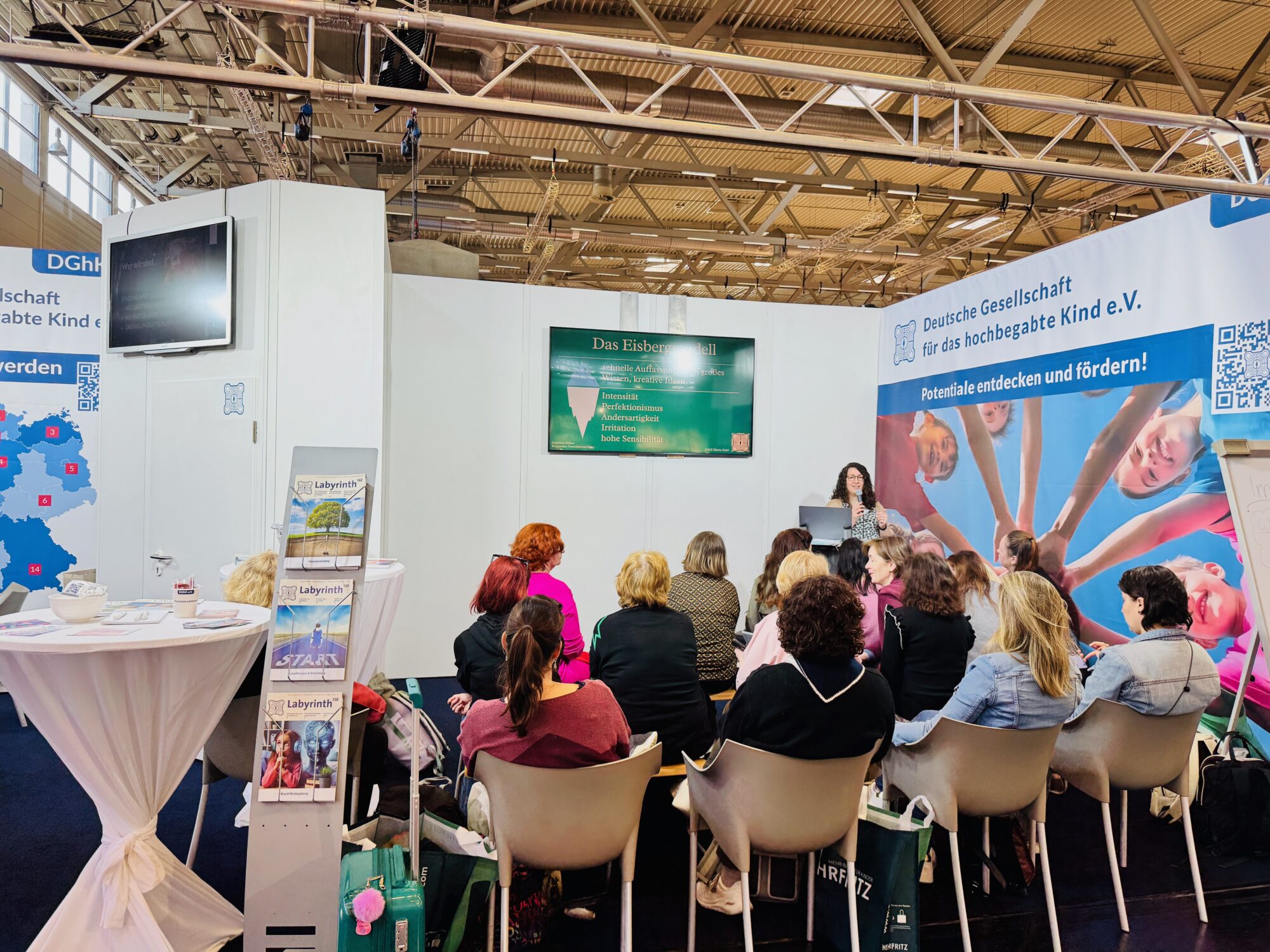 Am Stand liegen Informationsmaterialien, Hinweise zu Beratungs- und Förderangeboten sowie die aktuelle Labyrinth-Ausgabe bereit. Besucherinnen und Besucher können sich einen strukturierten Überblick verschaffen, konkrete Fragen ansprechen und Kontakte knüpfen. Für Schulen, Kitas und Familien entsteht damit ein niedrigschwelliger Zugang zu Orientierung und fachlicher Unterstützung.