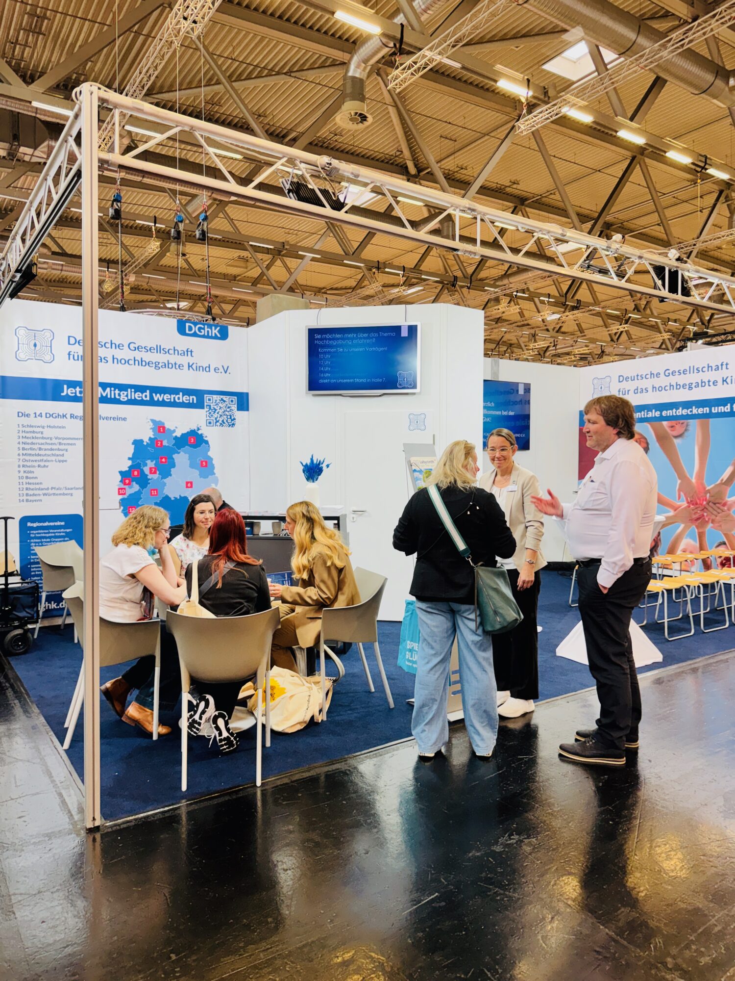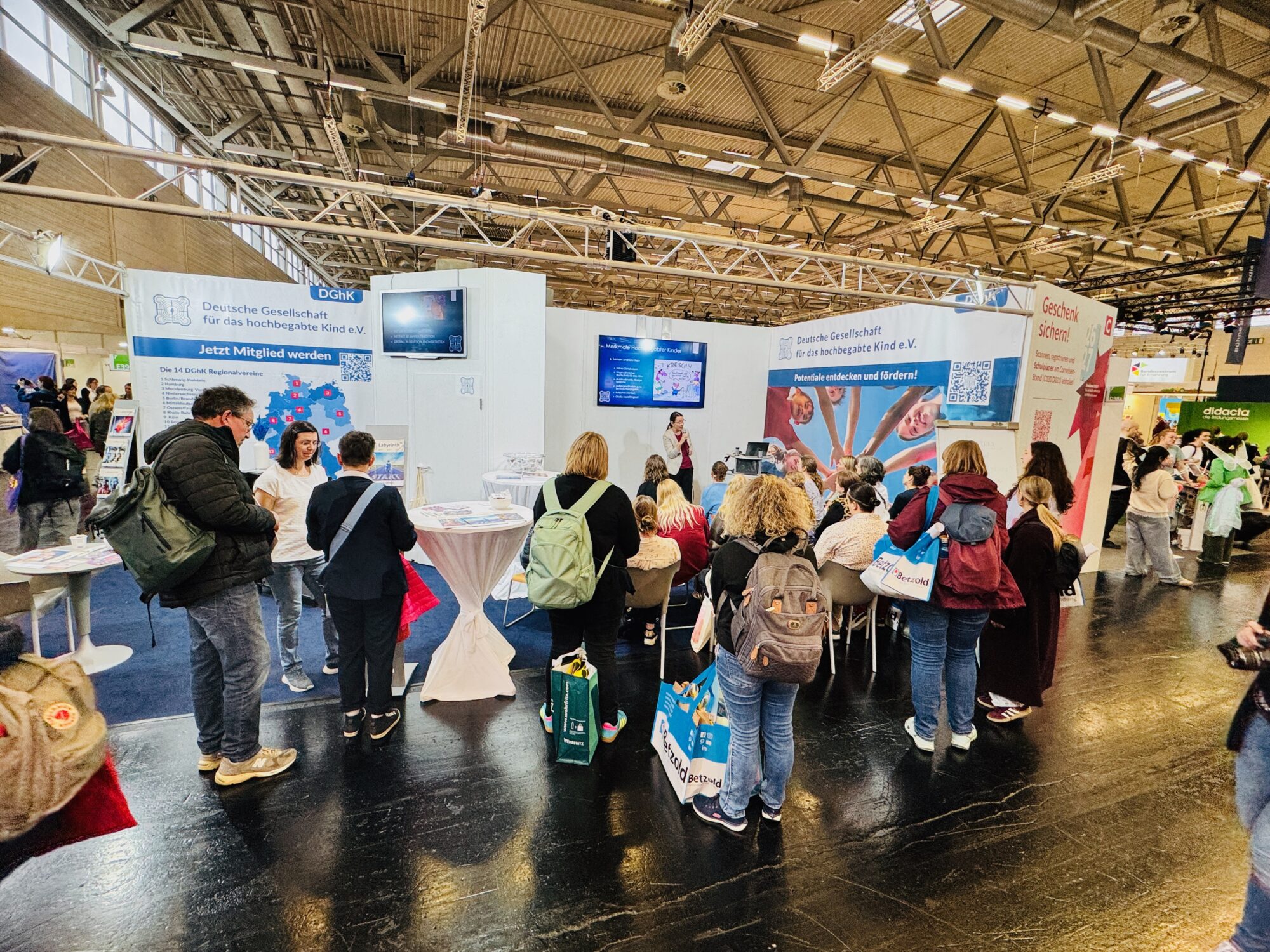 Nach einer längeren Pause, bedingt unter anderem durch die Pandemie, war die DGhK im Jahr 2024 wieder auf der Didacta vertreten. Der große Zuspruch, die starke Nachfrage nach Gesprächen und das breite Interesse an allen Fragen rund um Hochbegabung haben gezeigt, wie relevant dieses Thema in der Bildungslandschaft ist. Die positiven Erfahrungen von 2024 bilden die Grundlage dafür, dass mehrere Regionalvereine 2026 erneut gemeinsam antreten – mit deutlich größerer Fläche und einer erweiterten Präsenz.